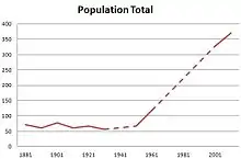 Up until the 1950s, the population of Clutton remained under 100 people (72 in 1801, 89 in 1851, 78 in 1901 and 67 in 1951). By 2001 the village had a population of 259.[11] According to the 2001 census, the civil parish was combined with neighbouring Carden civil parish and the figure was given as 328,[12] with the combined figure increasing further to 371 in the 2011 census.[1] The population of Clutton has expanded the most in the past few decades which coincided with the counter-urbanisation movement of the population in the UK.