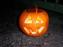 Traditionally in Portugal, however, the coco is represented by an iron pan with holes, to represent a face, with a light inside; or by a vegetable lantern carved from a pumpkin with two eyes and a mouth, which is left in dark places with a light inside to scare people.[34] In the Beiras, heads carved on pumpkins, called coca, would be carried by the village boys, stuck on top of wooden stakes.