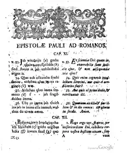 : CS1 maint: location missing publisher (link) - ↑ F. A. Knittel, Fragmenta Versionis Ulphilanae, Upsaliae 1763.