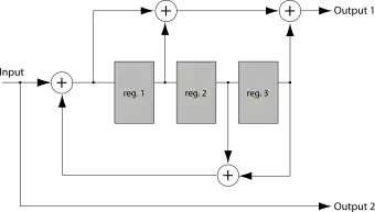 Img. 3. Two-state recursive systematic convolutional (RSC) code. Also called an 'accumulator.'