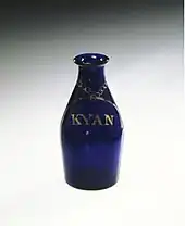 A cruet (/ˈkruːɪt/), also called a caster,[1] is a small flat-bottomed vessel with a narrow neck. Cruets often have a lip or spout and may also have a handle. Unlike a small carafe, a cruet has a stopper or lid. Cruets are normally made of glass, ceramic, stainless steel or copper.
