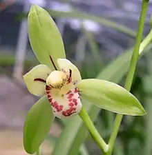 Cymbidium ensifolium, the four-season orchid, is a species of orchid, also known as the golden-thread orchid, spring orchid, burned-apex orchid and rock orchid. It has a number of different cultivars of interest to orchid collectors.[1]