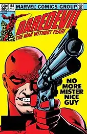 Miller continued the title in a similar vein to McKenzie. Resuming the drastic metamorphosis the previous writer had begun, Miller took the step of essentially ignoring all of Daredevil's continuity prior to his run on the series; on the occasions where older villains and supporting cast were used, their characterizations and history with Daredevil were reworked or overwritten. Most prominently, dedicated and loving father Jack Murdock was reimagined as a drunkard who physically abused his son Matt, entirely revising Daredevil's reasons for becoming a lawyer.[41] Spider-Man villain Kingpin was introduced as Daredevil's new primary nemesis, displacing most of his large rogues gallery. Daredevil himself was gradually developed into something of an antihero. In issue #181 (April 1982), he attempts to murder Bullseye by throwing him off a tall building; when the villain survives as a quadriplegic, he breaks into his hospital room and tries to scare him to death by playing a two-man variation on Russian roulette with a secretly unloaded gun.[41]