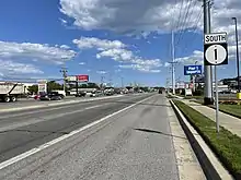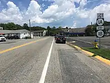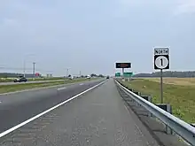 In 2004, the concurrent US 113 designation along DE 1 between Milford and Dover Air Force Base was removed.[77][78] Between September 2003 and May 2004, a $5 million improvement project took place on DE 1 between Dewey Beach and the Lewes and Rehoboth Canal bridge that added sidewalks on both sides of the road, median modifications, improvements to pavement, drainage, and intersections, and installed new pedestrian and traffic signals.[79] In 2004, DelDOT began a study on converting the Five Points intersection into an interchange in addition to constructing the Western Parkway.[76] The Western Parkway would have provided a road corridor from DE 1 north of Five Points south to DE 24, running to the west of DE 1. The parkway, which was intended to provide another north-south corridor in the area, was planned to have partial control of access, featuring intersections with existing roads but no private driveways or access to new development.[80] Alternatives for these projects were presented at public workshops between 2004 and 2008, although the projects were cancelled due to lack of support and financial limitations.[76] On September 11, 2006, work began on a $9.7 million project to widen DE 1 between DE 24 in Midway and US 9/DE 404 in Five Points by adding a third southbound lane and a multi-use lane in both directions. The project was completed on June 9, 2008.[81]