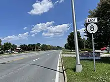 Delaware Route 8 (DE 8) is a state highway located in Kent County in the U.S. state of Delaware. It runs from Maryland Route 454 (MD 454) at the Maryland border in Marydel east to an intersection with DE 9 in Little Creek. The route passes through rural areas of western Kent County before heading through Delaware's capital city, Dover, on Forrest Avenue and Division Street. East of Dover, the road passes through more rural areas. DE 8 intersects DE 44 in Pearsons Corner; DE 15, U.S. Route 13 Alternate (US 13 Alt.), and US 13 in Dover; and the DE 1 toll road at a partial interchange east of Dover. The road was built as a state highway west of Dover by 1924 and east of Dover by 1931. The DE 8 designation was given to the road by 1936.