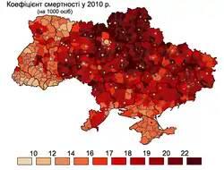 - ↑ Общий коэффициент смертности (на 1000 населения): Украина: 1950–2013 [Crude death rate (per 1,000 people): Ukraine: 1950–2013]. Demoscope Weekly (in Russian). Archived from the original on 21 March 2016. Retrieved 22 April 2016.