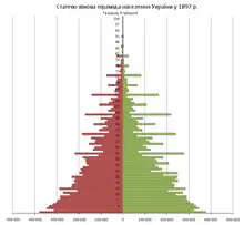 The figures below refer to the nine governorates of the Russian Empire (Volhynia, Katerynoslav, Kyiv, Podilia, Poltava, Tauryda, Kharkiv, Kherson and Chernihiv) with a Ukrainian majority.[38]