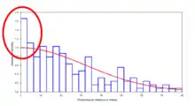 Measurements (angles and distances) are exact | Random errors are negligible, but systematic errors may introduce bias. This often happens with rounding of angles or distances to preferred ("round") values, resulting in heaping at particular values. Rounding of angles to zero is particularly common | Avoid dead reckoning in the field by using range finders and angle boards. Post-hoc smoothing of data by partitioning into detection intervals is effective in addressing minor biases | ![]() An indication of angle rounding to zero in the data - there are more detections than expected in the very first data interval |