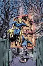 Doctor Fate is referenced in the main 2023 Knight Terrors event, and the Khalid Nassour version of the character makes an appearance in the Wonder Woman spin-off.[58] The conclusion of the event also introduces a new character called "Doctor Hate," who serves as a darker counterpart to Doctor Fate.[59]