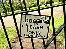 Vandalised "DOG ON LEASH ONLY" sign amended to refer to dogging, Kennington Park, London, 2012