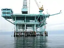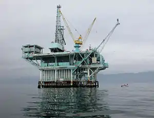 The Dos Cuadras Offshore Oil Field is a large oil and gas field underneath the Santa Barbara Channel about eight miles southeast of Santa Barbara, California. Discovered in 1968, and with a cumulative production of over 260 million barrels of oil, it is the 24th-largest oil field within California and the adjacent waters.[1] As it is in the Pacific Ocean outside of the 3-mile tidelands limit, it is a federally leased field, regulated by the U.S. Department of the Interior rather than the California Department of Conservation. It is entirely produced from four drilling and production platforms in the channel, which as of 2009 were operated by Dos Cuadras Offshore Resources (DCOR), LLC, a private firm based in Ventura. A blowout near one of these platforms – Unocal's Platform A – was responsible for the 1969 Santa Barbara oil spill that was formative for the modern environmental movement, and spurred the passage of the National Environmental Policy Act.