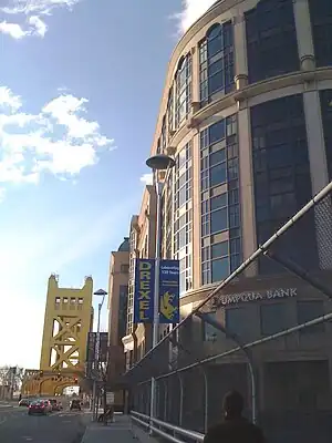 Drexel University Sacramento—DUS was a satellite campus of Drexel University, located in downtown Sacramento, California. It was in Old Sacramento, beside the Tower Bridge over the Sacramento River.[2] Drexel is a not-for-profit, private, research university based in Pennsylvania, with three campuses in Philadelphia. The Sacramento campus was opened in 2009 and closed in 2015 with students enrolled at that time allowed to complete their studies.