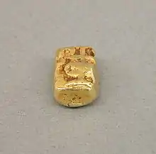 Most gold coins of 9th and early 10th century Java are stamped with the character ta in nagari script on one side, an abbreviation of tahil. The same character remained on coins until the Kediri period in the 12th-century.[1] Gold coins were usually made in the shape of cubes, carefully crafted and very uniform in size and gold content.