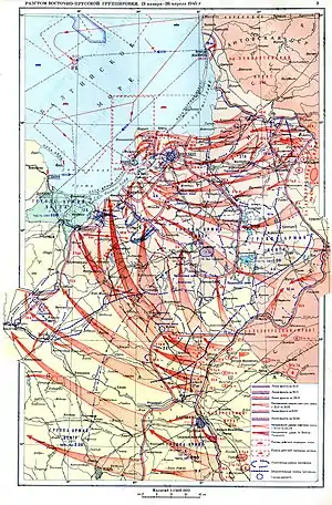 The main thrust of the offensive was to be conducted by the 3rd Belorussian Front under Ivan Chernyakhovsky. His forces were tasked with driving westwards towards Königsberg, against the defensive positions of the 3rd Panzer Army and 4th Army, the northern armies of Generaloberst Georg-Hans Reinhardt's Army Group Centre.[6]