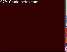 Exports in 2004 reached US$10,530,764,911. The vast majority of Angola's exports, 92% in 2004, are petroleum products. US$785 million worth of diamonds, 7.5% of exports, were sold abroad that year.[42] Nearly all of Angola's oil goes to the United States, 526 kbbl/d (83.6×10 3 m3/d) in 2006, making it the eighth largest supplier of oil to the United States, and to China, 477 kbbl/d (75.8×10 3 m3/d) in 2006. In the first quarter of 2008, Angola became the main exporter of oil to China.[43] The rest of its petroleum exports go to Europe and Latin America.[36] U.S. companies account for more than half the investment in Angola, with Chevron-Texaco leading the way. The U.S. exports industrial goods and services, primarily oilfield equipment, mining equipment, chemicals, aircraft, and food, to Angola, while principally importing petroleum. Trade between Angola and South Africa exceeded US$300 million in 2007.[44] From the 2000s, many Chinese have settled and started up businesses.[45]