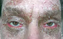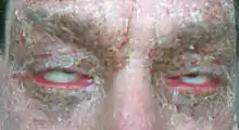 Ectropion is a medical condition in which the lower eyelid turns outwards.[1] It is one of the notable aspects of newborns exhibiting congenital harlequin-type ichthyosis, but ectropion can occur due to any weakening of tissue of the lower eyelid. The condition can be repaired surgically. Ectropion is also found in dogs as an inherited, developmental condition.[2]