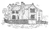 - Edge Barton, viewed from east. The top of the circular staircase tower is visible in the corner of the north and west wings (right)