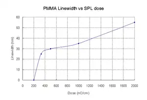 - A 20 nm resolution had also been demonstrated using a 3 nm 100 keV electron beam and PMMA resist.[36] 20 nm unexposed gaps between exposed lines showed inadvertent exposure by secondary electrons.