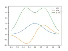 Third order spectroscopy, sometimes revered to as Aspnes's third-derivative, is a technique used to enhance the resolution of a spectroscopy measurement. This technique was first used by D.E. Aspnes to study electroreflectance in 1971.[14] Using 3rd order derivatives can sharpen the peak of a function (see figure). Especially in spectroscopy, where the wave is never measured on one specific wavelength, but always on a band, it is use full to sharpen the peak, and thus narrow the band.