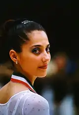 Olena Ihorivna Vitrychenko (Ukrainian: Олена Ігорівна Вітриченко, Russian: Елена Игоревна Витриченко; born 25 November 1976), also known as Elena Vitrichenko, is an Individual Ukrainian Rhythmic Gymnast. She is the 1996 Olympics bronze medalist, the 1997 World All-around champion and 1997 European All-around champion.