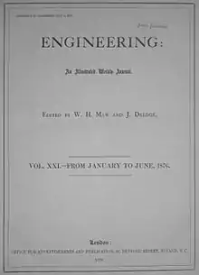 Engineering was initially published as an illustrated weekly magazine, edited by Zerah Colburn, with volumes published twice yearly in January and July. Volume 1 was issued 1866.[1]