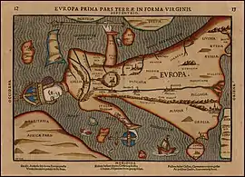 In classical Greek mythology, Europa (Ancient Greek: Εὐρώπη, Eurṓpē) was a Phoenician princess. One view is that her name derives from the Ancient Greek elements εὐρύς (eurús) 'wide, broad', and ὤψ (ōps, gen. ὠπός, ōpós) 'eye, face, countenance', hence their composite Eurṓpē would mean 'wide-gazing' or 'broad of aspect'.[18][19][20][21] Broad has been an epithet of Earth herself in the reconstructed Proto-Indo-European religion and the poetry devoted to it.[18] An alternative view is that of Robert Beekes, who has argued in favour of a Pre-Indo-European origin for the name, explaining that a derivation from eurus would yield a different toponym than Europa. Beekes has located toponyms related to that of Europa in the territory of ancient Greece, and localities such as that of Europos in ancient Macedonia.[22]