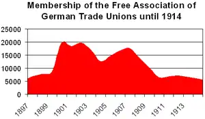 The Free Association of German Trade Unions (German: ; abbreviated FVdG; sometimes also translated as Free Association of German Unions ⓘ[3] or Free Alliance of German Trade Unions)[4] was a trade union federation in Imperial and early Weimar Germany. It was founded in 1897 in Halle under the name Representatives' Centralization of Germany as the national umbrella organization of the localist current of the German labor movement. The localists rejected the centralization in the labor movement following the sunset of the Anti-Socialist Laws in 1890 and preferred grassroots democratic structures. The lack of a strike code soon led to conflict within the organization. Various ways of providing financial support for strikes were tested before a system of voluntary solidarity was agreed upon in 1903, the same year that the name Free Association of German Trade Unions was adopted.