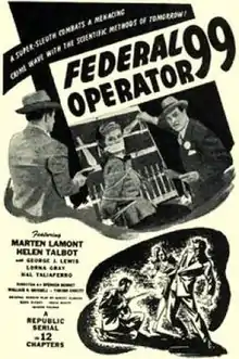 Federal Operator 99 is a 1945 American movie serial from Republic Pictures. It was later edited down into a feature version titled F.B.I. 99 for television. The serial is about an FBI agent named Jerry Blake who battles gentleman thief Jim Belmont, who escapes custody with help of his gang and begins a wave of crimes, beginning with plotting to steal the crown jewels of the Princess Cornelia.