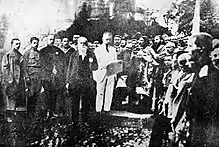 At the end of May, the Central Rada sent a delegation to Petrograd headed by Volodymyr Vynnychenko and Mykola Kovalevskyi. The delegation demanded the Ukrainization of the army, administration, and schooling, as well as that the Provisional Government of Russia Republic express its principled attitude to the possibility of granting autonomy to Ukraine.[1] In response to the Provisional Government's refusal, the Central Council issued its First Universal, adopted on 23 June [O.S. 10 June] 1917 and proclaimed at the Second Military Congress. It stated:[2]