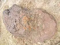The upgraded blast furnace first made pig-iron using a hot blast, on 2 May 1865. Although production problems would emerge later, the furnace made iron—in taps of three to six tons and occasionally ten tons at a time—at an initial production rate of about 90 tons per week.[68] Hampshire claimed that the ore—after it had been roasted in open heaps to remove moisture and extraneous matter—was producing 60% metal, an indication of its relatively high iron content.[69]