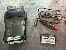 A flash cartridge is one of several cartridges containing flash memory that have been developed for use in video game consoles. These cartridges enable homebrew applications and games to be used. Flash cartridges offer a means of storage for keeping the games until a user decides to run a game, which then it is copied to the cartridge's game ROM for the console to run the game as if it were a normal ROM cartridge. The game storage can be in the form of onboard flash memory on the cartridge, although more recent cartridges use external memory cards as storage in place of onboard memory, such as Compact Flash or Secure Digital memory cards. Recent flash cartridges may also use RAM instead of ROM for flashing games to run on the console as a way to offer faster loading times than what is possible on reprogrammable ROM.
