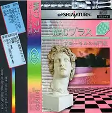 Packaged within the album are aesthetics that convey 1980s visuals which define the genre. With heavy implication on retro computer imagery, it depicts a sculpture of the Greek god Helios and the Japanese title in bright pink, tiled surroundings with a background of the Twin Towers.[8][4][2] Macintosh Plus later launched a line of tank tops and hoodies sporting a variation of the Floral Shoppe album cover.[9]