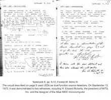Mims' background in the new technology of light-emitting diodes allowed him to sell a feature story to Popular Electronics magazine. Their monthly circulation was 400,000 readers compared to Model Rocketry circulation of 15,000.[27] The five-page article would give an overview of the device physics and typical applications; it would be featured on the November 1970 cover.[28] Mims asked the editors if they also wanted a project story and they agreed. Ed Roberts and Mims developed an LED communicator that would transmit voice on an infrared beam of light to a receiver hundreds of feet away. Readers could buy a kit of parts to build the Opticom LED Communicator from MITS for $15.[29] MITS sold just over hundred kits. MITS was not making money on the kits and magazine articles paid $400. Mims was out of the Air Force and wanted to pursue a career as a technology writer. Roberts bought out his original partners and focused the company on emerging market of electronic calculators. The January 1975 cover of Popular Electronics featured Roberts' Altair 8800 computer.[30] Roberts asked Mims to write the Altair 8800 user’s manual in return for an assembled Altair, which Mims donated to the Smithsonian Institution’s National Museum of American History together with many original MITS documents and his high school language translating analog computer, in 1987.[31][32]