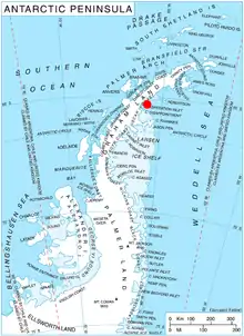Foyn Point (65°15′S 61°38′W / 65.250°S 61.633°W) is a point surmounted by a peak 525 metres (1,720 ft) high, forming the southeast extremity of Blagoevgrad Peninsula and marking the north side of the entrance to Exasperation Inlet, on Oscar II Coast on the east side of Graham Land, Antarctica. Sir Hubert Wilkins on a flight of December 20, 1928 photographed what appeared to be an island off the east coast, later charting it in 66°30′S 62°30′W / 66.500°S 62.500°W (present Slav Point). Subsequent comparison of Wilkins' photographs of this feature with those taken by the Falkland Islands Dependencies Survey, who charted the coast in 1947, indicate that this point, although considerably north of the position reported by Wilkins, is the feature named by him as "Foyn Island". The name Foyn Point is given to the southeast extremity of this feature. It is named for Svend Foyn.[1]