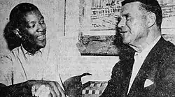 ![]() Lane (right) shaking the hand of Bill McGill after he signed with the Chicago Packers in May 1962 | |