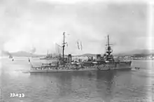 In 1912–1913, the ship received two 2 m (6 ft 7 in) Barr & Stroud rangefinders; by the end of World War I, the ship had been fitted with two 2.74 m (9 ft) rangefinders in addition to the 2 m rangefinders. One of the latter was moved to the aft superstructure and configured for high-angle fire control.[3]