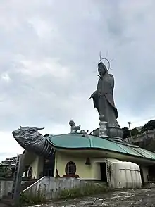 In 1910, the main hall of the temple was designated as a National Treasure of Japan. The temple was completely destroyed in the atomic bombing of Nagasaki on 9 August 1945 at 11:02 am. It was subsequently rebuilt in 1979 with an 18-meter aluminium alloy statue of Kannon, the Bodhisattva of compassion, standing atop a spirit turtle. Inside is a Foucault pendulum which swings over the remains of 16,500 Japanese killed during World War II and in the atomic bombing of the city. At 25 meters, it is one of the largest Foucault pendulums in Japan.[7]
