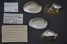 - ↑ Reátegui-Zirena, Evelyn G.; Stewart, Paul M.; Miller, Jonathan M. (March 2013). "Growth Rates and Age Estimations of the Fuzzy Pigtoe, Pleurobema strodeanum: A Species Newly Listed Under the Endangered Species Act". Southeastern Naturalist. 12 (1): 161–170. doi:10.1656/058.012.0113. ISSN 1528-7092.