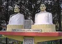 Statues of Dashrath Chand and Ganga Lal Shrestha at Shobha Bhagwati where they were executed.