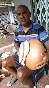 The ghumot (East Indians: घुमट or ಘುಮೋಟ), gumot or ghumat is a membranophone instrument from Goa, India. Ghumat is a percussion instrument of earthen vessel having both sides open; on the bigger opening a leather (drum membrane) of monitor lizard is mounted. Generally ghumat is accompanied by 'shamel', another traditional instrument with wooden drum and goat leather mount. This instrument is still very popular amongst by the East Indian people. In August 2019, Goa declared the ghumot as its heritage instrument.[1]
