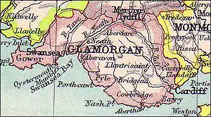 The Lordship of Glamorgan was established by Robert Fitzhamon following the defeat of Iestyn ap Gwrgant, c.1080.[42][43] The Lordship of Morgannwg was split after it was conquered; the kingdom of Glamorgan had as its caput the town of Cardiff and took in the lands from the River Tawe to the River Rhymney.[42] The Lordship took in four of the Welsh cantrefi, Gorfynydd, Penychen, Senghenydd and Gwynllwg. The area later known as the Gower Peninsula was not under the Lordship of Glamorgan, and became the Gower Lordship which had previously been the cantref of Gŵyr. The lowlands of the Lordship of Glamorgan were manorialized, while much of the sparsely populated uplands were left under Welsh control until the late 13th century.[42] Upon the death of William, Lord of Glamorgan, his extensive holdings were eventually granted to Gilbert de Clare in 1217.[44] The subjugation of Glamorgan, begun by Fitzhamon, was finally completed by the powerful De Clare family,[45] and in 1486 the kingdom was granted to Jasper Tudor.[42]