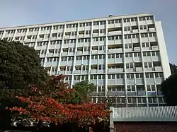 Gordon Wilson Flats[3] | ![]() | 1959 | 314–320 The Terrace, Wellington | The first concept sketch was produced in 1943 with working drawing produced in July–August 1954 and site work commencing in 1956.[18] The 10-storey public housing building contains 87 units consisting of 12 single floor bedsits on the ground floor, and on the remaining floors, 75 two-bedroom two-storey maisonette style flats with their own staircases.[19][20] |