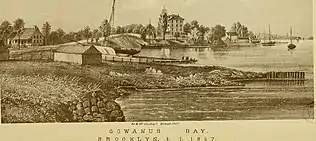 In 1849, under a decree by the New York Legislature, the Gowanus Creek was deepened so it could be used as a 1.5-mile (2.4 km) commercial waterway connected to Upper New York Bay. The creek's dredging was completed in 1860.[17] Another act of the Legislature in 1867 allowed the canal to be deepened further.[27] In the same decade, a developer named Edwin Litchfield undertook a project to straighten the creek into a canal.[1]: 167