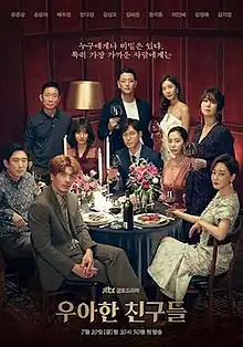 Graceful Friends (Korean: 우아한 친구들; RR: Uahan Chingudeul) is a South Korean television series starring Yoo Jun-sang, Song Yoon-ah, Bae Soo-bin, Han Eun-jung, Kim Sung-oh, Kim Hye-eun, Jung Suk-yong, Lee In-hye, Kim Won-hae and Kim Ji-young. It aired on JTBC from July 10 to September 5, 2020.[1] It's available for streaming on Netflix and Disney+ in selected countries.[2][3]