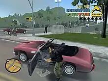 Grand Theft Auto clones allow players to freely explore the game world,[5] which is typically on the scale of an entire city. Some games base their level design on real world cities, such as London, New York City, and Los Angeles.[5] Players are usually able to navigate by vehicle or on foot.[29][30] Some games put greater emphasis on leaping, climbing,[5] and even swimming.[31] Exploring the world is not just necessary to complete objectives, but also to gain valuable items, weapons, and vehicles. Different parts of the game world may be controlled by different enemy factions, who will attempt to stop the player in a variety of ways.[17] However, more recent games in this genre allow players to acquire their own territory.[8][32] The freedom of navigating a huge game world may be overwhelming or confusing for new players.[17] Game designers have come up with a variety of navigational aids to solve this problem. A mini-map feature is common,[33] while Saints Row and Grand Theft Auto IV go so far as to offer a GPS service.[25] Games without these navigation tools are sometimes criticized as confusing.[5]