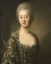 - ↑ Genealogie ascendante jusqu'au quatrieme degre inclusivement de tous les Rois et Princes de maisons souveraines de l'Europe actuellement vivans [Genealogy up to the fourth degree inclusive of all the Kings and Princes of sovereign houses of Europe currently living] (in French). Bourdeaux: Frederic Guillaume Birnstiel. 1768. p. 29.