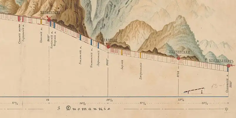 The Cherebashev settlement was located on the site of the Ingush village of Gvileti in the Darial Gorge. According to Ingush historical legends, the ancestors of the Cherbizhev's (Чербижевы) lived along the areas of the Georgian Military Road. In one of these legends, written down by B.K. Dalgat, it is said that Cherbizh (Чербыш) and the inhabitants of Gvileti managed to defeat the army of the Kabardian knyaz, who was marching on Tiflis.[6][7] In gratitude for this, the Georgian king George presented Cherbizh with land from Kazbeki to Gvileti.[8][9]