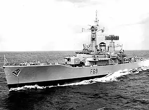 HMS Bacchante (F69) was a Leander-class frigate of the Royal Navy. Bacchante was built by Vickers on the Tyne, launched on 29 February 1968 and commissioned on 17 October 1969.