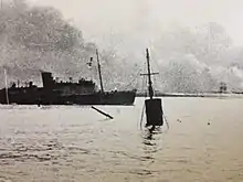 When darkness fell it was possible to see where she had been holed and to make temporary repairs. But in this condition it was apparent she was a danger to shipping that was already in enough danger. There was a risk she might founder in the approach channel to the harbour but after midnight she was ordered to leave and her commander succeeded in getting the badly damaged vessel clear of the harbour entrance.