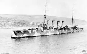 At Skyros Island, Greece in 1915 showing the new wartime camouflage paint pattern